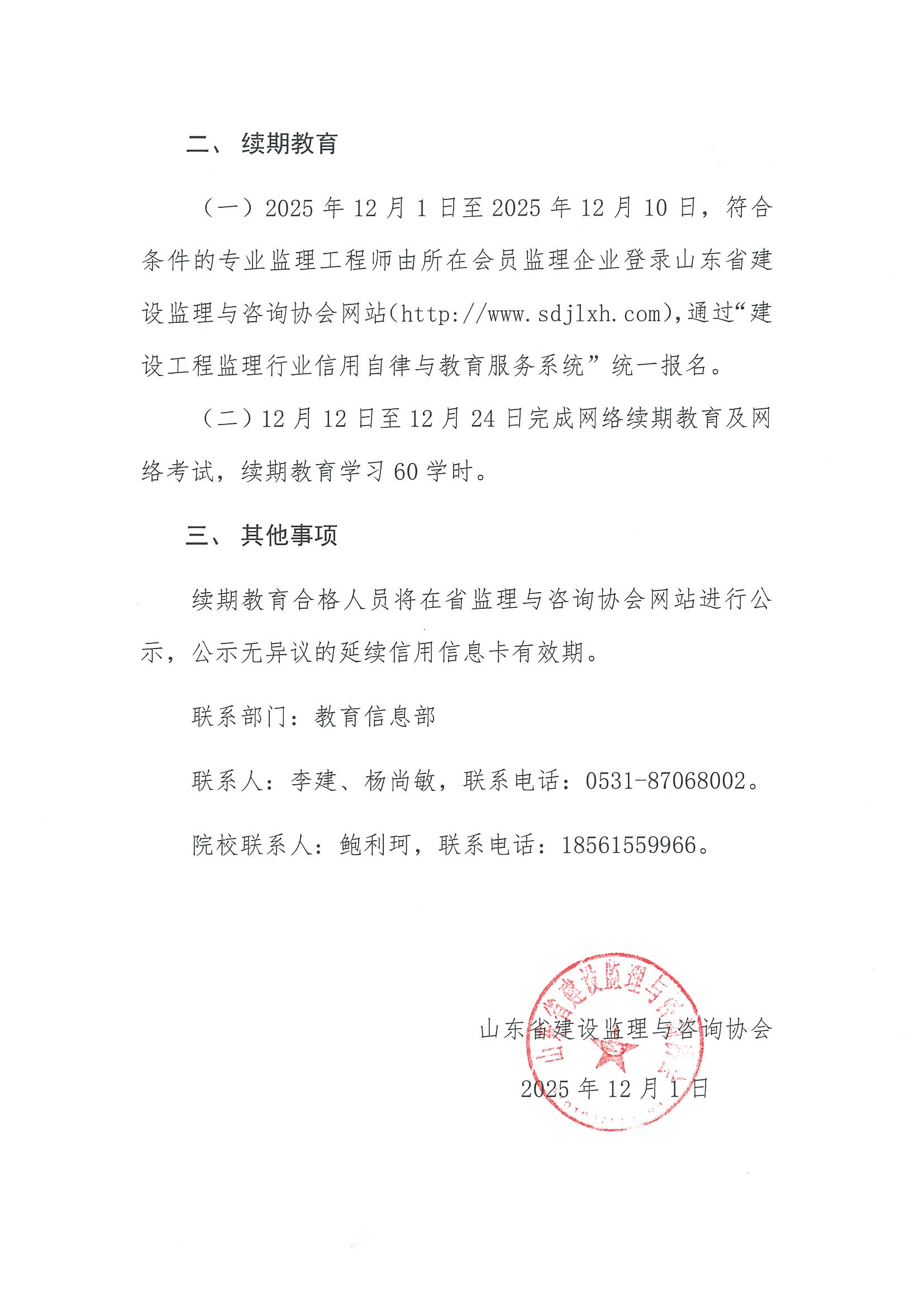 关于组织2025年度第四批专业监理工程师续期教育的通知