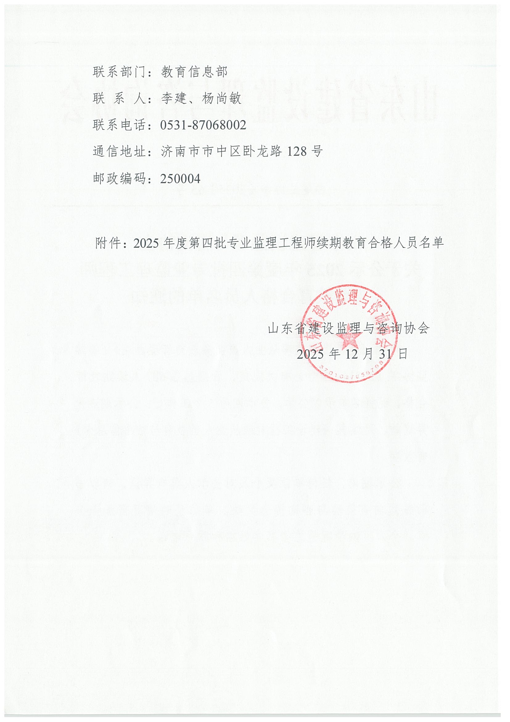 关于公示2025年度第四批专业监理工程师续期教育合格人员名单的通知