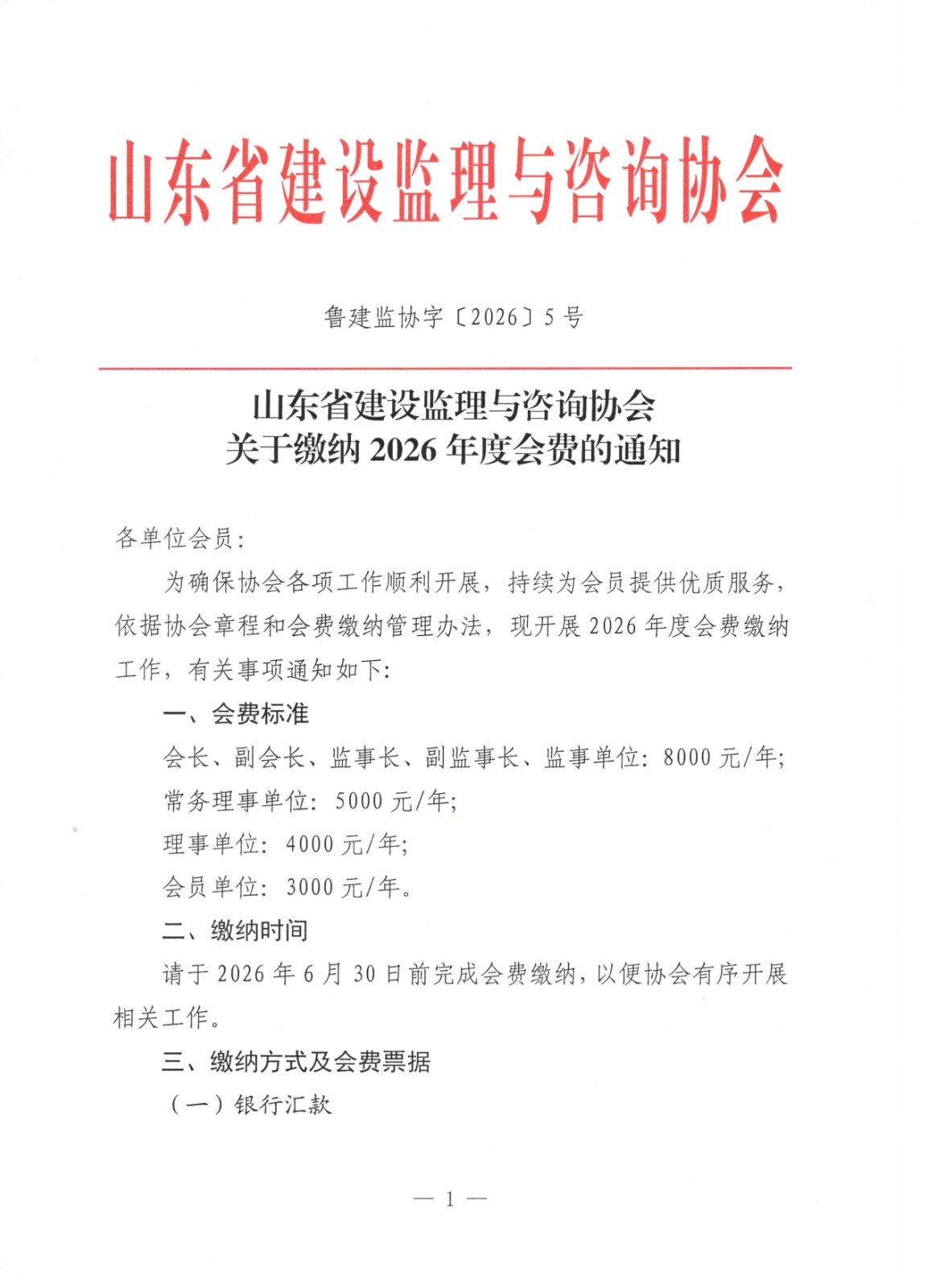 关于缴纳2026年度会费的通知