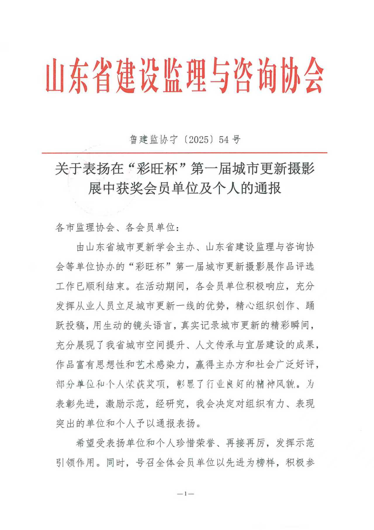 <div style="LINE-HEIGHT: 25pt; TEXT-INDENT: 28pt"><span style="FONT-SIZE: 14pt">二十年来公司赢得了各级政府及行业管理部门颁发的数十项荣誉,多年被评为青岛市先进监理单位、建筑施工安全生产先进单位、工程质量管理先进单位、建筑市场诚信守法先进单位、山东省先进监理企业,2006年、2010年荣获中国建设监理先进监理单位,2008年获得中国建设监理创新发展20年工程监理先进企业;2014年在青岛市中介服务行业工程监理企业星级评定中被评为&ldquo;五星级企业&rdquo;。同时,公司也连续多年获得山东省、青岛市重合同守信用单位、青岛市精神文明单位等社会荣誉称号。</span></div>