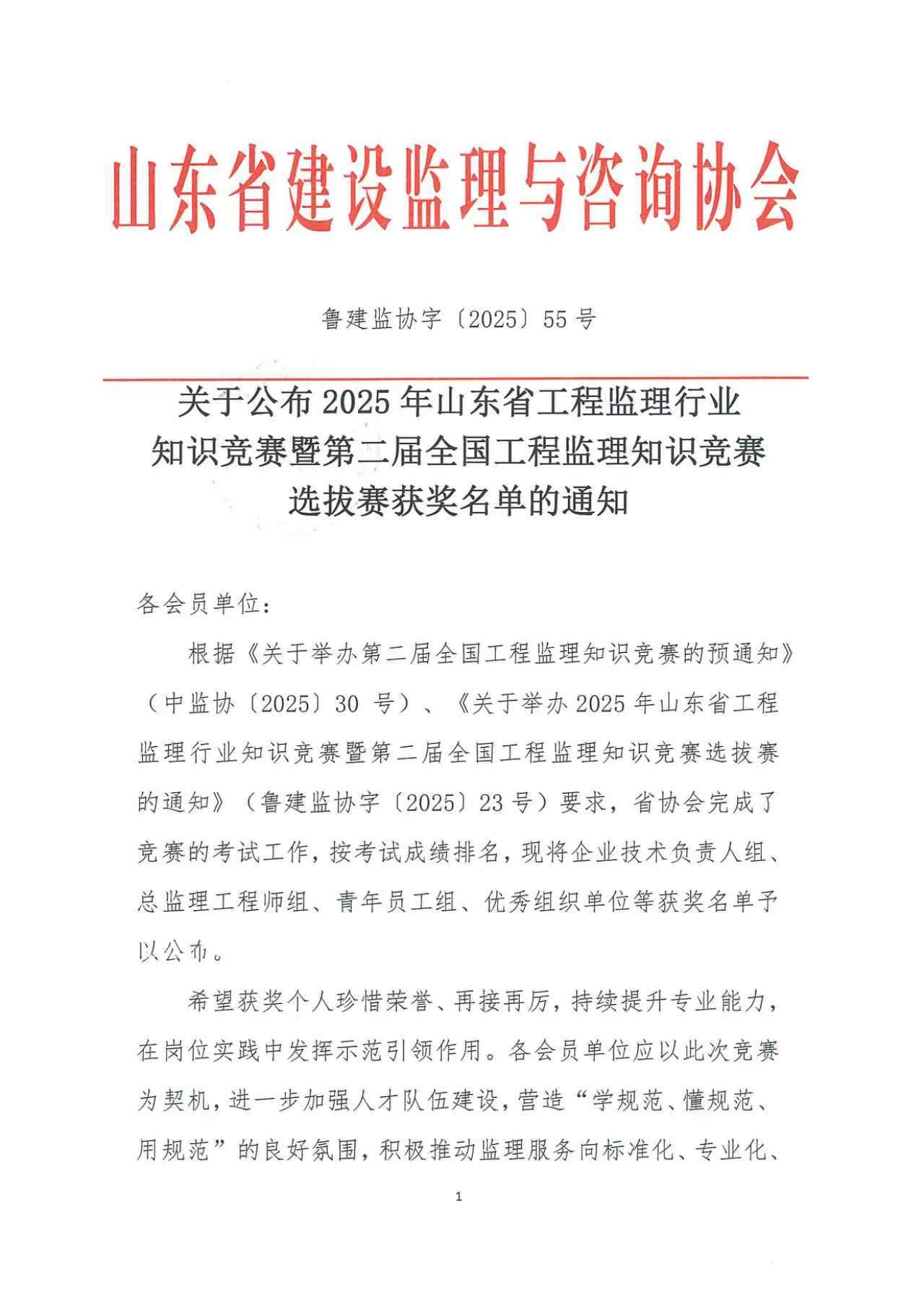协会概况 Tue, 14 Oct 2025 04:26:42 +0800 山东省建设监理与咨询协会(以下简称省协会)成立于1993年12月15日,是山东省区域内合法从事工程建设的监理企业、项目管理企业、招标代理机构等社会中介组织和兼营监理业务的工程设计、科学研究以及工程建设咨询单位自愿结成的行业性、非营利性社会组织,接受登记管理机关山东省民政厅、党建领导机构中共山东省社会组织综合党委以及行业管理部门山东省住房和城乡建设厅的监督管理和业务指导。多次获得优秀社会组织称号,评估等级为“AAAAA社会团体,协会党支部被评为党建工作示范点、5星级党支部以及优秀党支部。目前有会员单位800多家,专业覆盖房建、市政、水利、电力、交通、石油、轨道等13个工程建设领域。