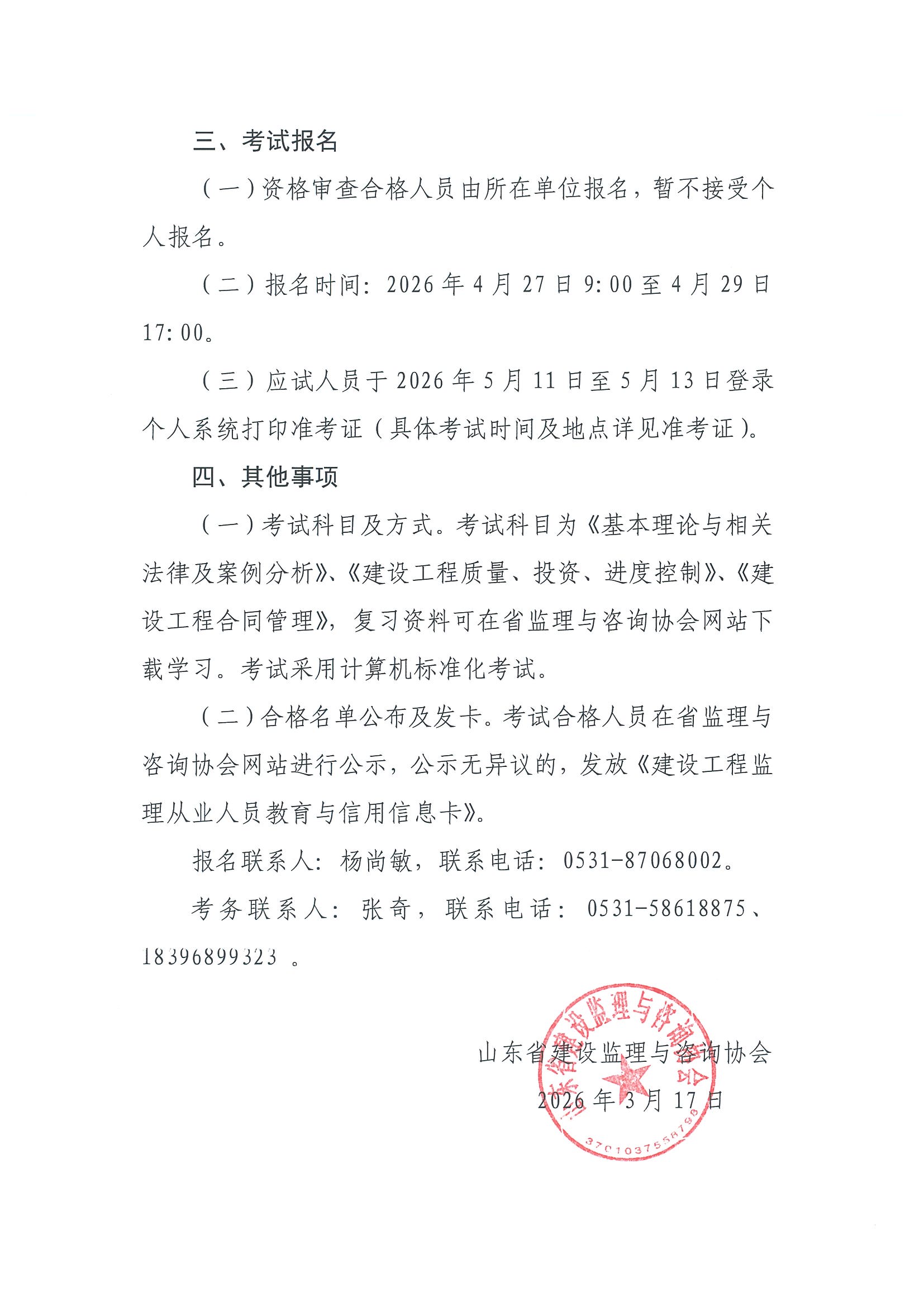 关于组织2026年第一批专业监理工程师职业能力水平评价考试的通知 Thu, 19 Mar 2026 10:01:28 +0800