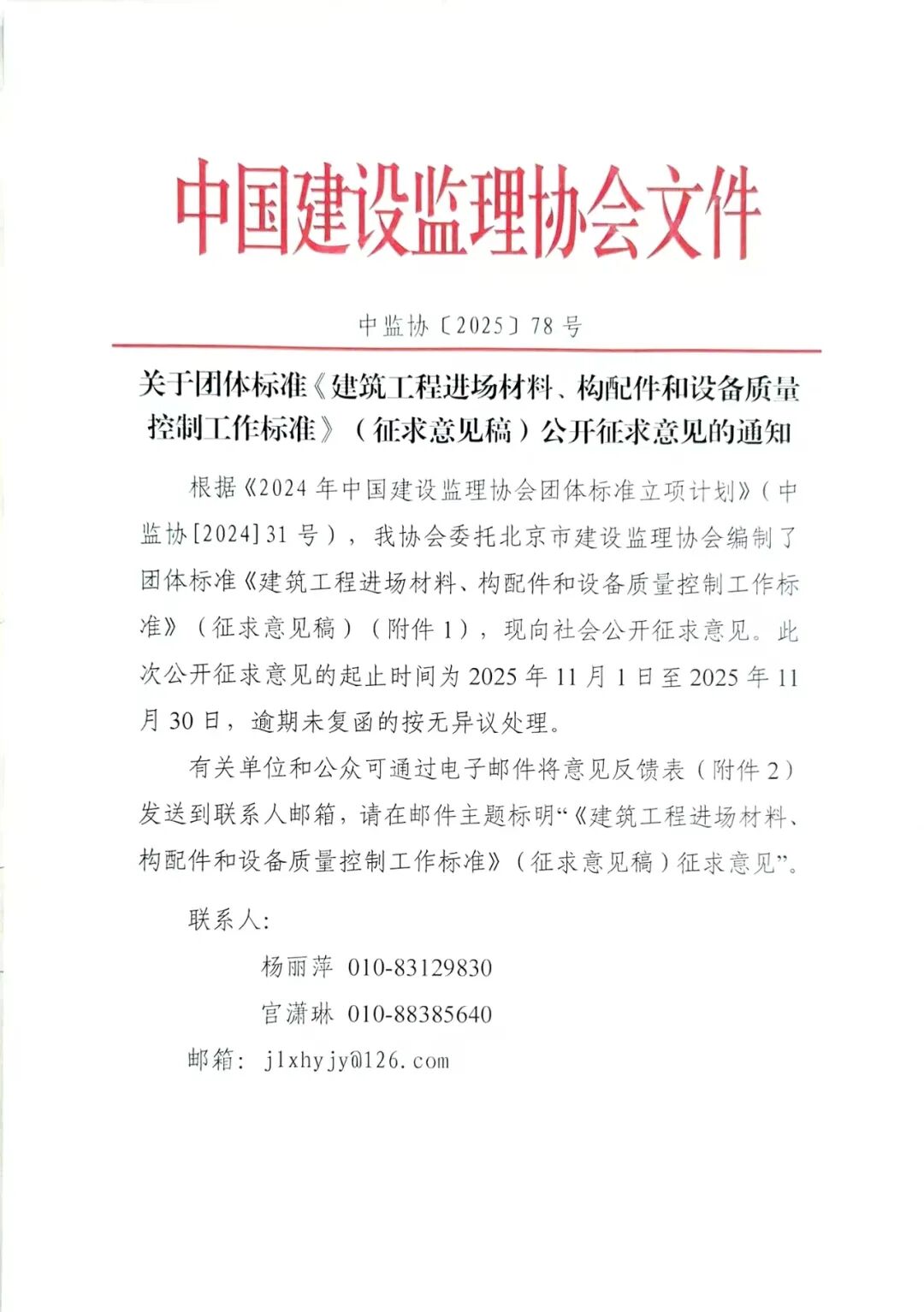 附件:1.《建筑工程进场材料、构配件和设备质量控制工作标准》(征求意见稿).docx 2.《建筑工程进场材料、构配件和设备质量控制工作标准》(征求意见稿)意见反馈表.doc