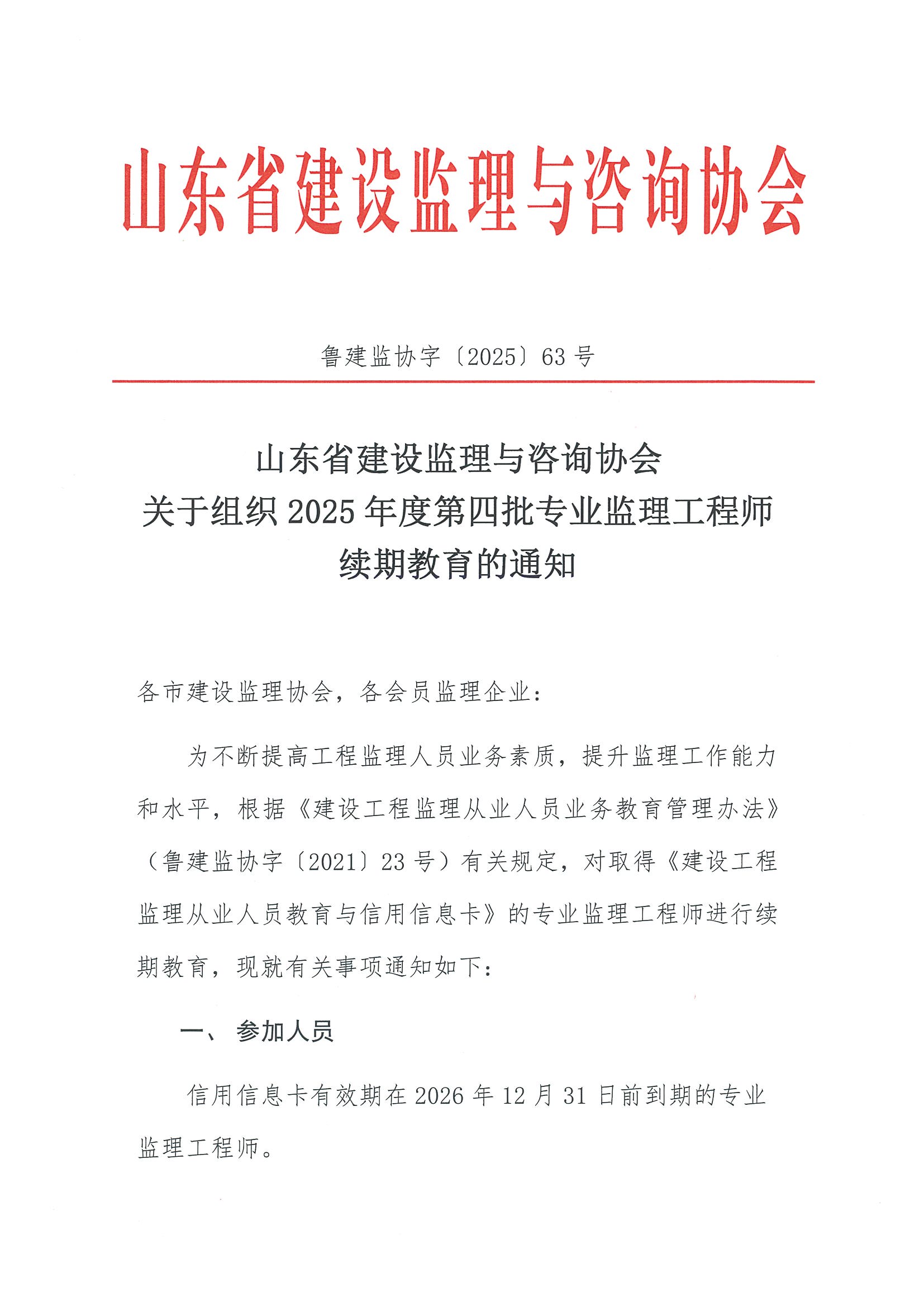 关于组织2025年度第四批专业监理工程师续期教育的通知