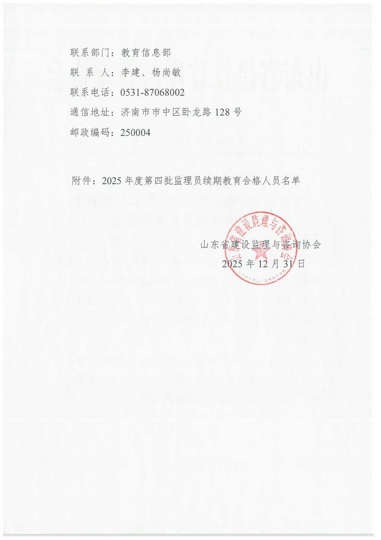 关于公示2025年度第四批监理员续期教育合格人员名单的通知