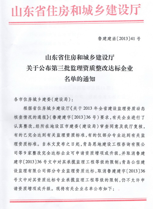 <p style="LINE-HEIGHT: 150%"><span style="LINE-HEIGHT: 150%; FONT-SIZE: 12pt"><span style="mso-spacerun: yes">&nbsp;&nbsp;&nbsp; </span></span><span style="LINE-HEIGHT: 150%; FONT-FAMILY: 宋体; FONT-SIZE: 12pt; mso-hansi-font-family: Calibri; mso-ascii-font-family: Calibri; mso-ascii-theme-font: minor-latin; mso-fareast-font-family: 宋体; mso-fareast-theme-font: minor-fareast; mso-hansi-theme-font: minor-latin">山东恒信建设监理有限公司成立于一九九二年八月,是山东省成立较早的监理公司之一,系全国和山东省轻工业行业综合实力较强的甲级设计单位山东省轻工业设计院控股的股份制企业。公司以山东省轻工业设计院为技术依托,拥有&ldquo;房屋建筑工程监理甲级、电力工程监理甲级、市政公用工程监理甲级、机电安装工程监理甲级&rdquo;四个专业监理资质,是行业内率先通过</span><span style="LINE-HEIGHT: 150%; FONT-SIZE: 12pt">ISO9001</span><span style="LINE-HEIGHT: 150%; FONT-FAMILY: 宋体; FONT-SIZE: 12pt; mso-hansi-font-family: Calibri; mso-ascii-font-family: Calibri; mso-ascii-theme-font: minor-latin; mso-fareast-font-family: 宋体; mso-fareast-theme-font: minor-fareast; mso-hansi-theme-font: minor-latin">:</span><span style="LINE-HEIGHT: 150%; FONT-SIZE: 12pt">2008</span><span style="LINE-HEIGHT: 150%; FONT-FAMILY: 宋体; FONT-SIZE: 12pt; mso-hansi-font-family: Calibri; mso-ascii-font-family: Calibri; mso-ascii-theme-font: minor-latin; mso-fareast-font-family: 宋体; mso-fareast-theme-font: minor-fareast; mso-hansi-theme-font: minor-latin">国际质量体系认证单位。</span><span style="LINE-HEIGHT: 150%; FONT-SIZE: 12pt"> <span><o:p></o:p></span></span></p>