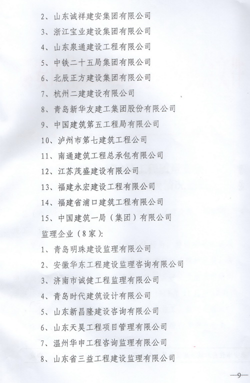 <div style="LINE-HEIGHT: 25pt; TEXT-INDENT: 26.25pt"><span style="FONT-SIZE: 14pt">企业监理的项目获得国家级奖项18项,其中东海路环境工程、山东省国际会展中心、青岛大剧院、西海岸医疗中心、卓亭广场、唐岛湾绿化等项目获得国家最高质量奖项-鲁班奖;青岛名人雕塑园、快速路二期、鲁信长春花园、青岛市体育中心综合训练馆、崂山创新园等67项工程获得省级优质奖项。五月的风、极地海洋世界、跨海大桥端接线、青岛市地铁2号线、3号线、青岛世界园艺博览会主题馆及景观等一系列的地标性建筑也是公司永存的辉煌。</span></div>